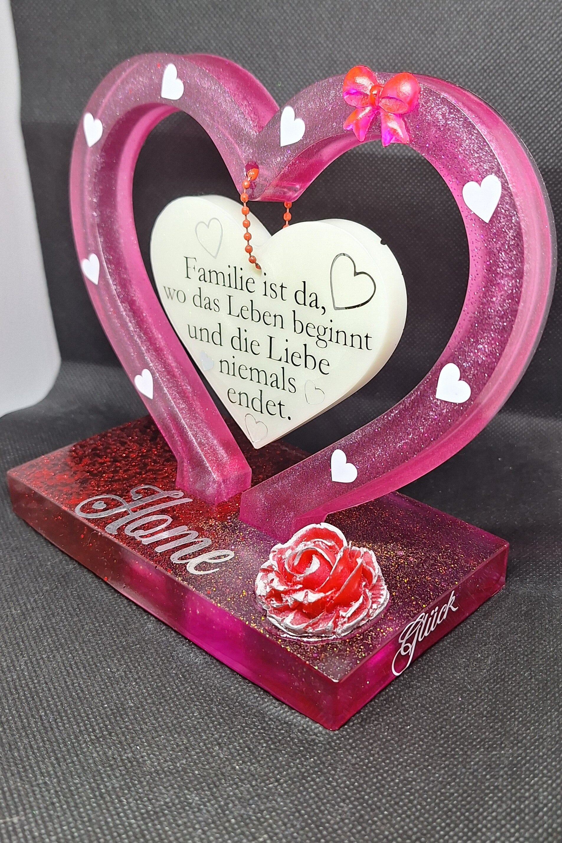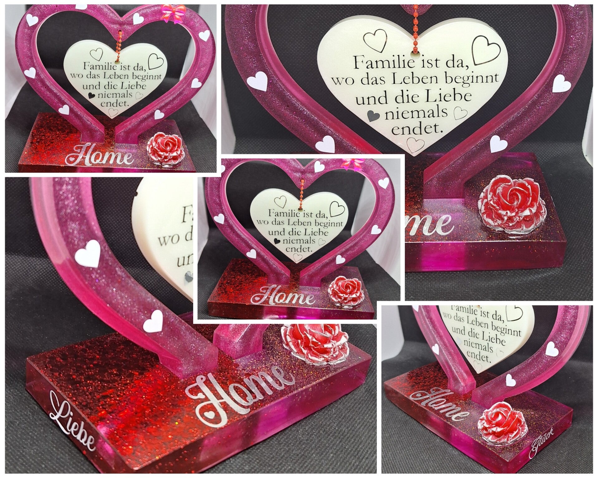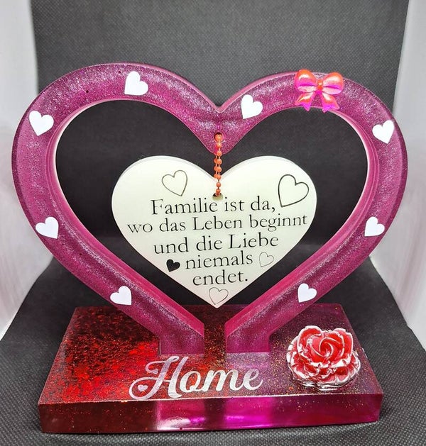 Herz in pink/rosa mit Spruch, Akzenten und Details
