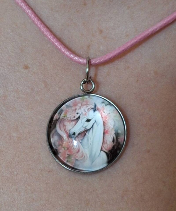 25 mm groß, Wachskordelkette in rosa. Verstellbar.