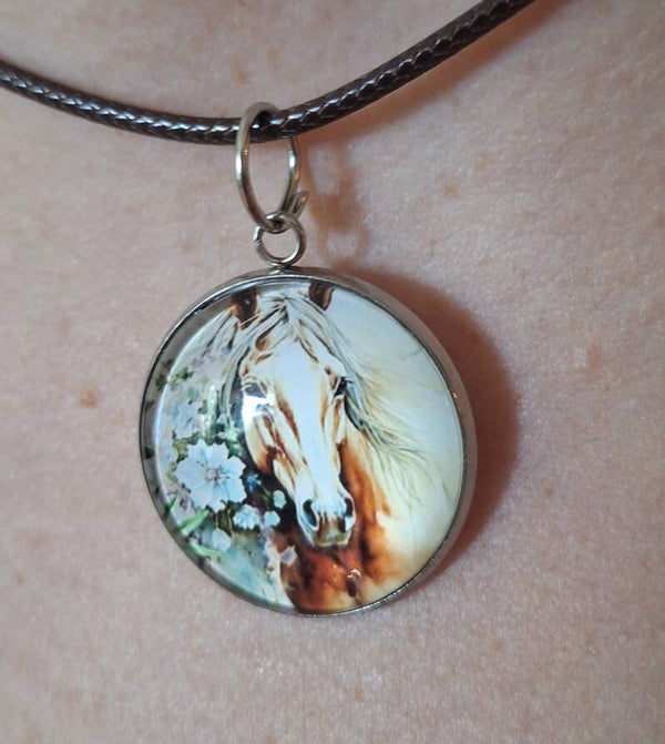 25 mm groß, Wachskordelkette in schwarz. Verstellbar.