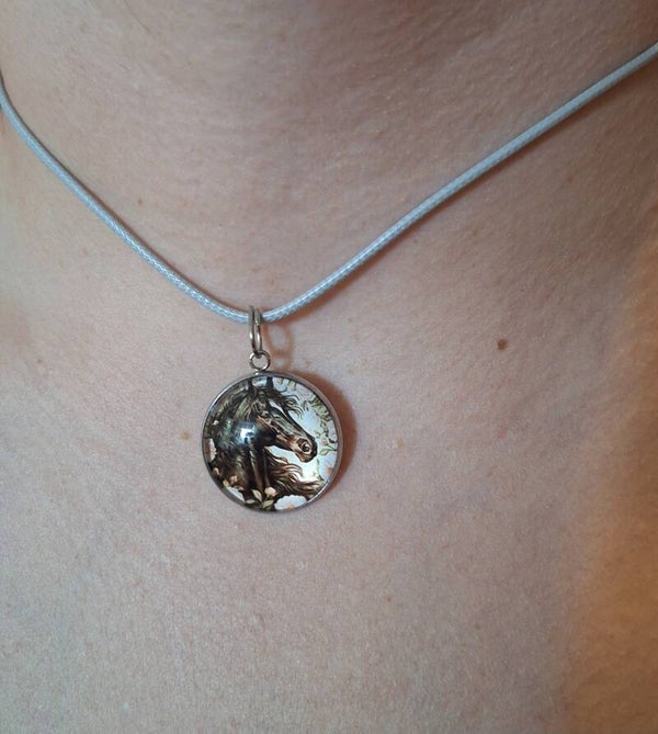 25 mm groß, Wachskordelkette in grau. Verstellbar.