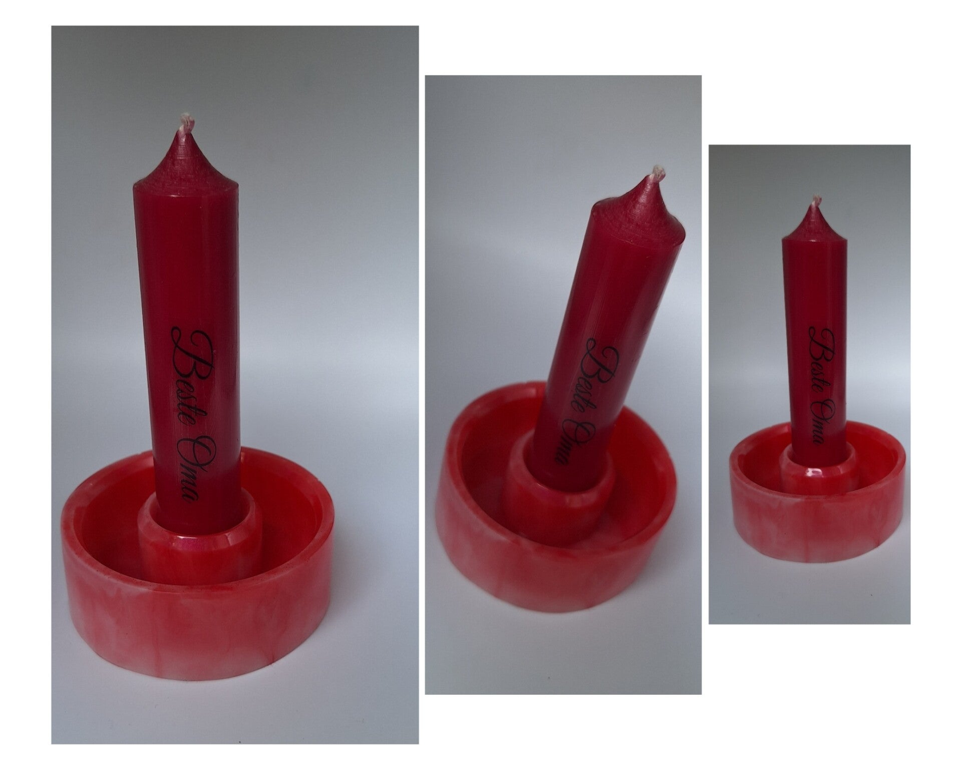 Set besteht aus Kerzenhalter,Stabkerze mit Schrift,Schutzglashülle, und Warnhinweise.