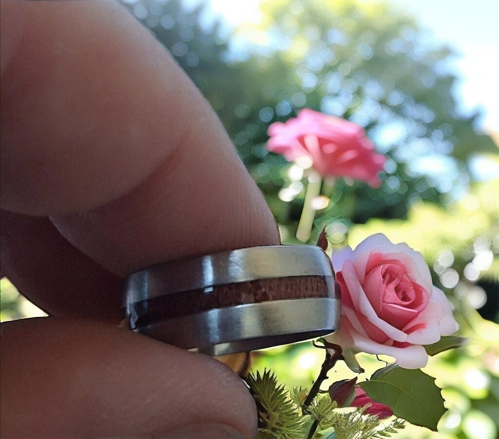 Edelstahl Holz Design Ring Size 17
