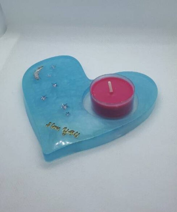 In Blau. Dazu gibt es ein Vanilleduftteelicht.