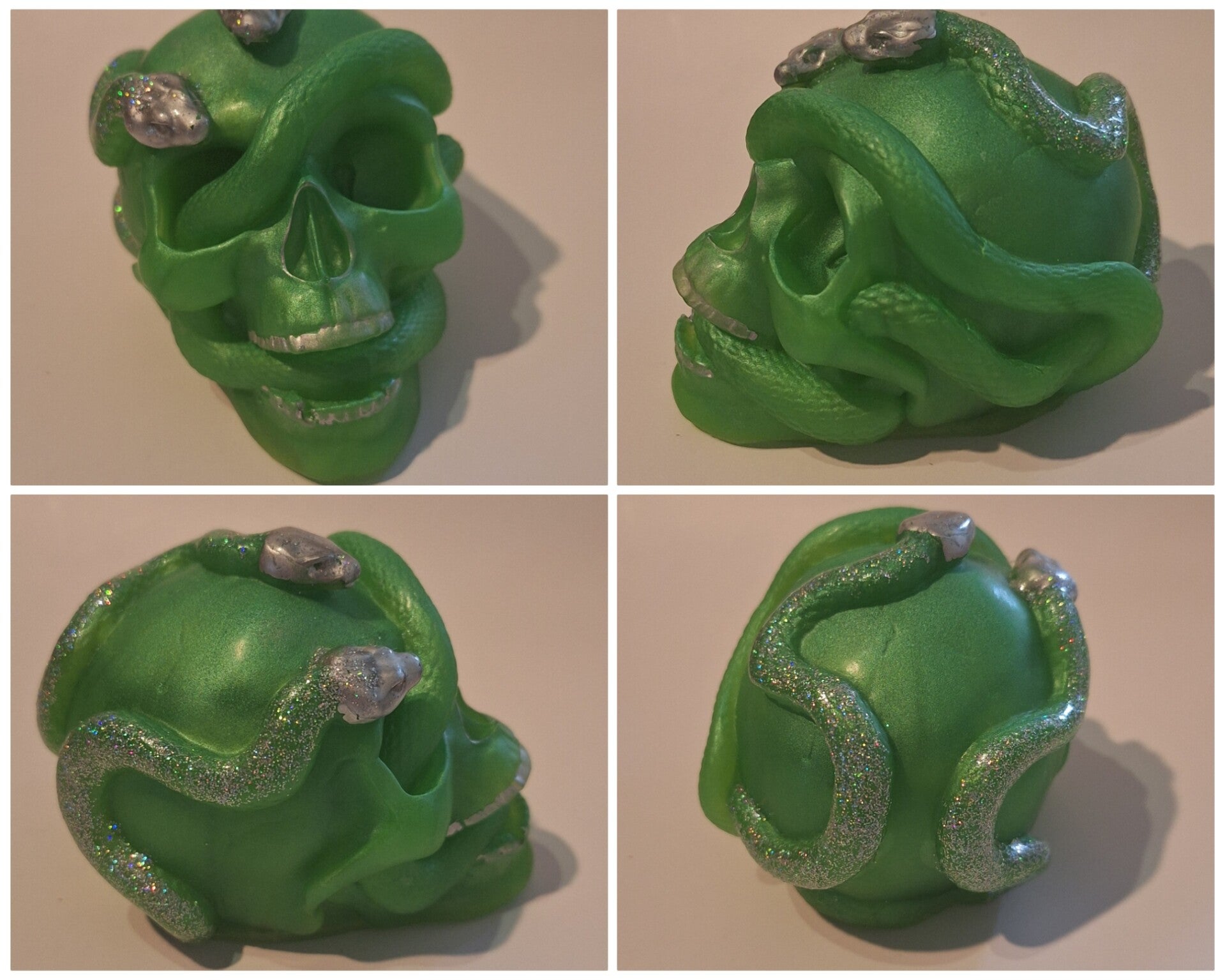 Deko Totenkopfschädel Schlange Grün B-Ware